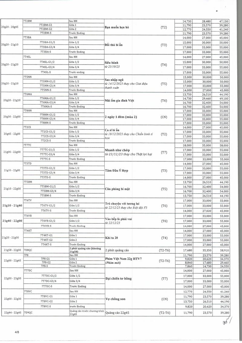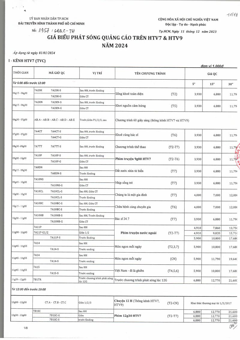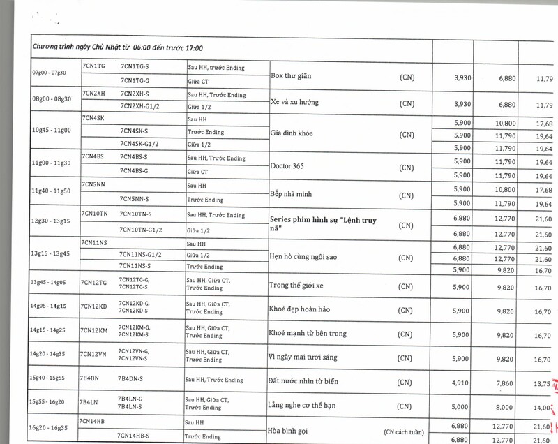 Dưới đây là thông tin bảng giá quảng cáo trên kênh HTV7 mà bạn đang quan tâm: